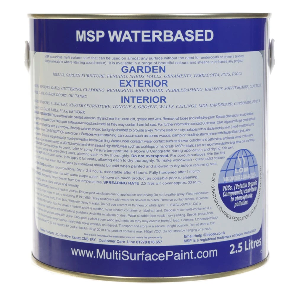 Bedec Multi Surface Paint (MSP) Soft Gloss Black 2.5L is a water based paint which requires no primer and can be used internally or externally. It is also highly flexible and resistant to cracking and flaking.