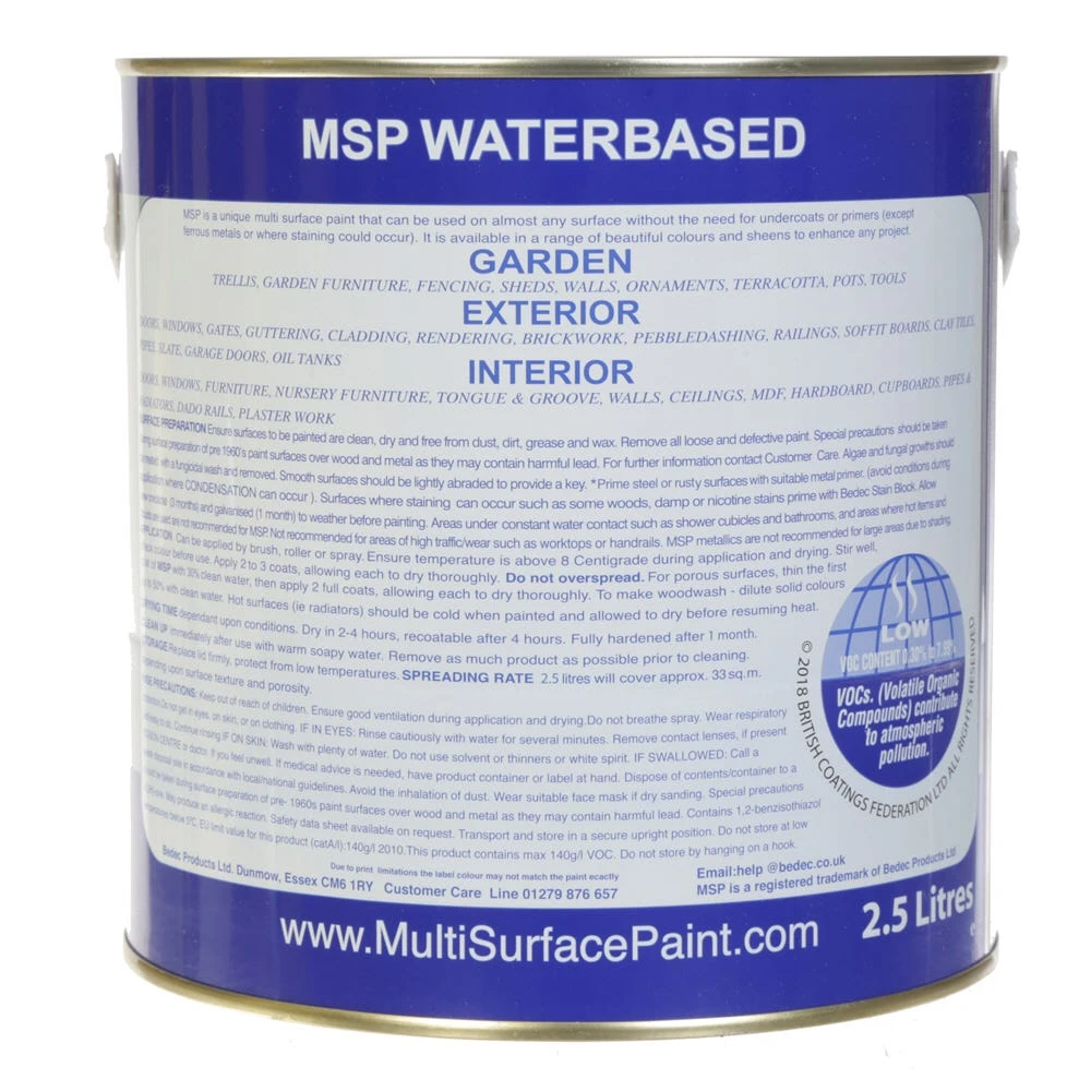 Bedec Multi Surface Paint (MSP) Soft Matt Black 2.5L is a water based paint which requires no primer and can be used internally or externally. It is also highly flexible and resistant to cracking and flaking.