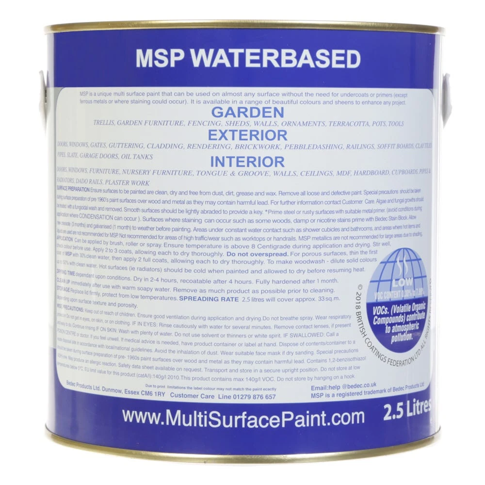 Bedec Multi Surface Paint (MSP) Soft Satin Black 2.5L is a water based paint which requires no primer and can be used internally or externally. It is also highly flexible and resistant to cracking and flaking.