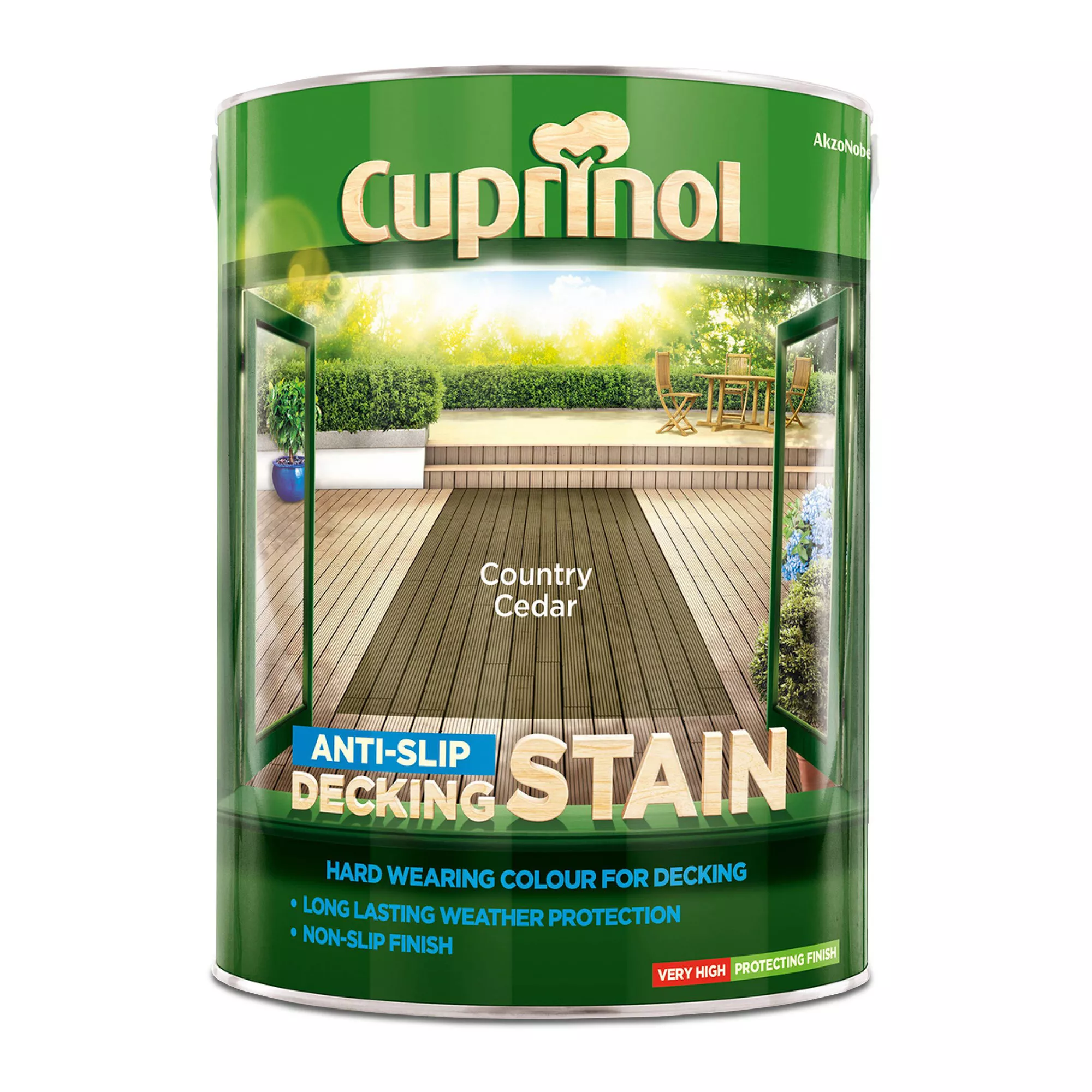 You can apply this anti slip decking stain from Cuprinol to , using a brush or roller, to colour and provide protection. It takes 2-6 hours to dry and will cover up to 8 m² per litre on average.
