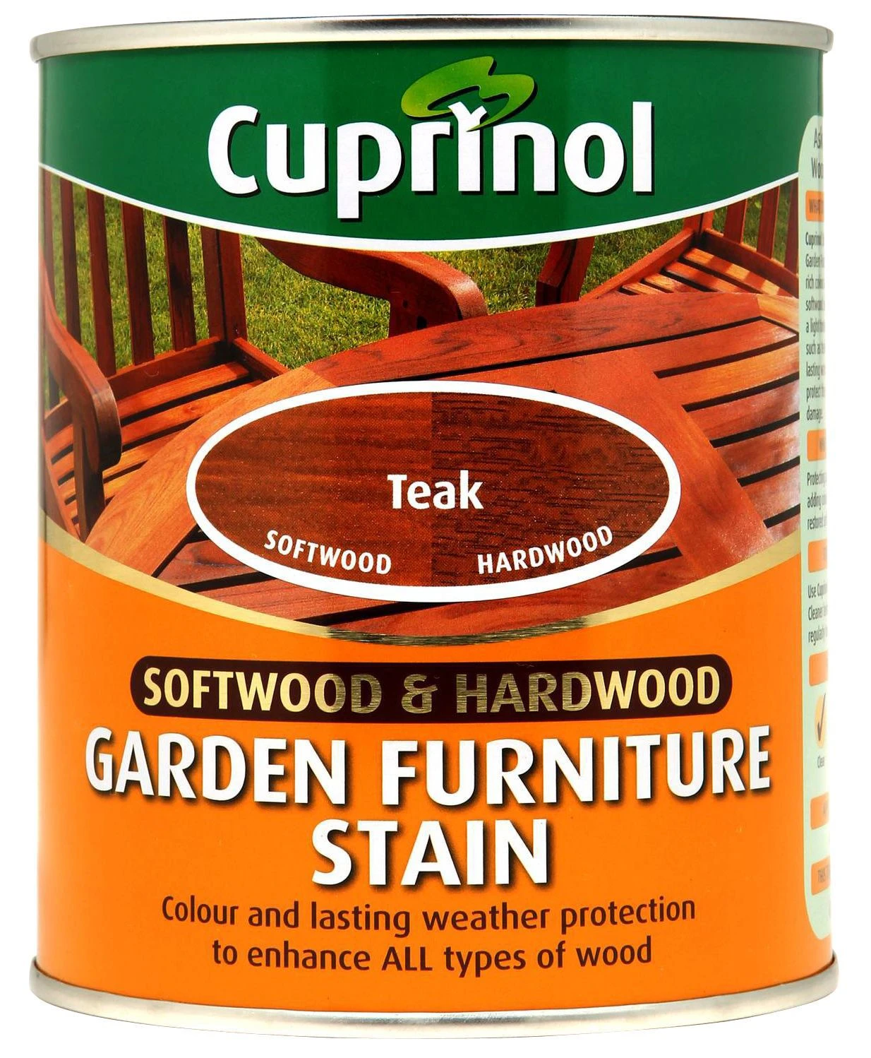 You can apply this garden furniture stain from the Cuprinol Softwood & hardwood range to , using a brush, to colour and provide protection. It takes 2-6 hours to dry and will cover up to 20 m² per litre on average.