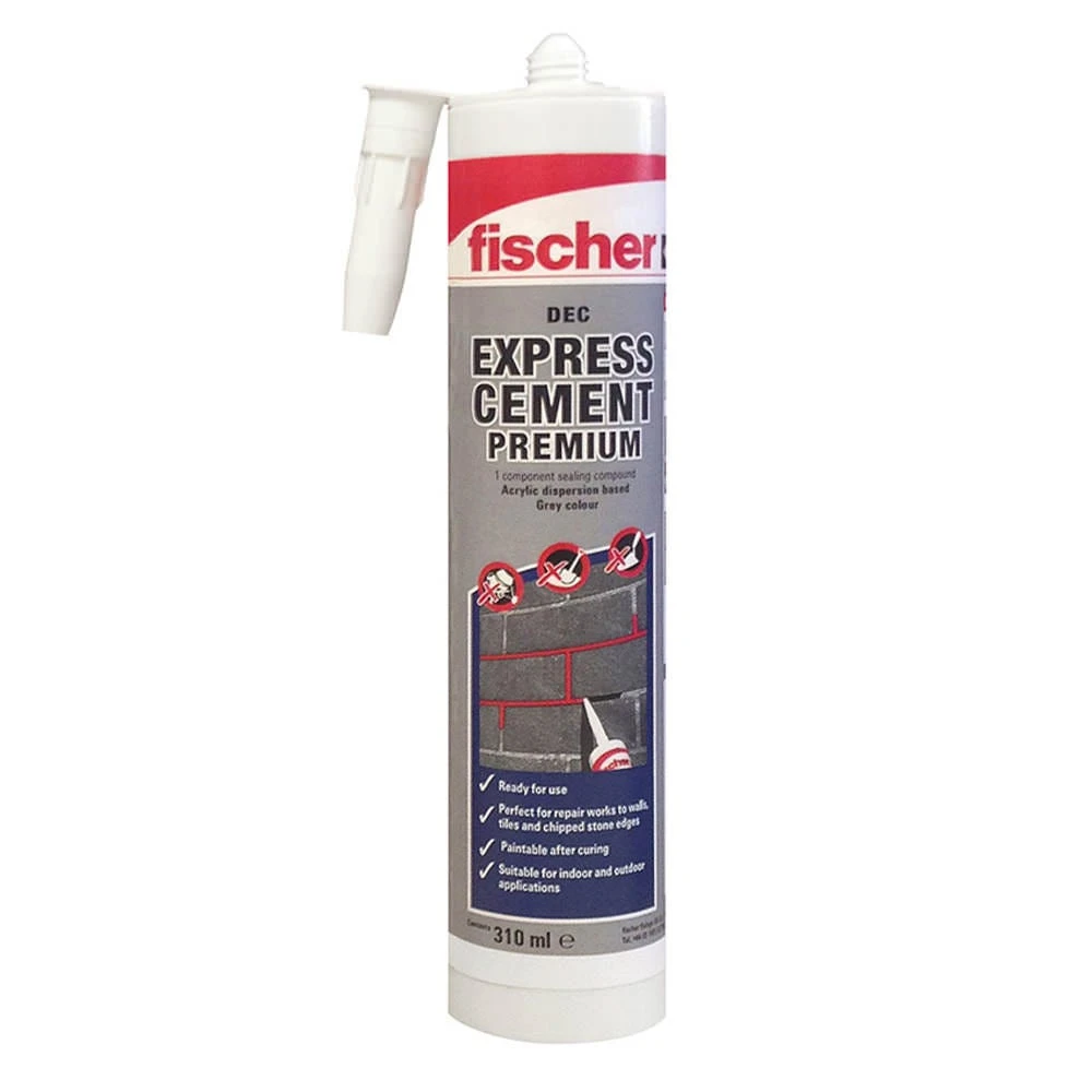 Fischer DEC Express Cement supplied in a 310ml cartridge tube for the general repair of masonry joints, closing cracks and bonding tiles and bricks.