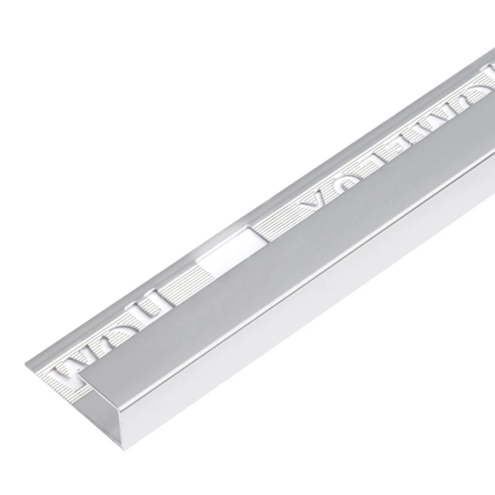 The 12.5mm Square Edge Silver Metal Tile Trim 2.5m features natural, muted tones, match the latest trends in tiles, complement natural coloured grout and can be matched with metal borders.