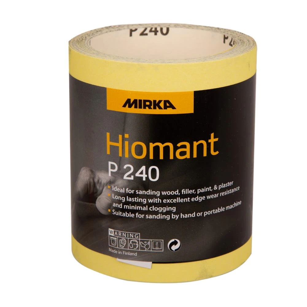 Mirka Yellow Hiomant Sandpaper comes in a 10m roll and is designed for medium to heavy-duty use. It is suitable for sanding both by hand and with a sanding machine. This product is ideal for use on hardwood, paint, putty, plaster, filler, plastic, and softwood surfaces.