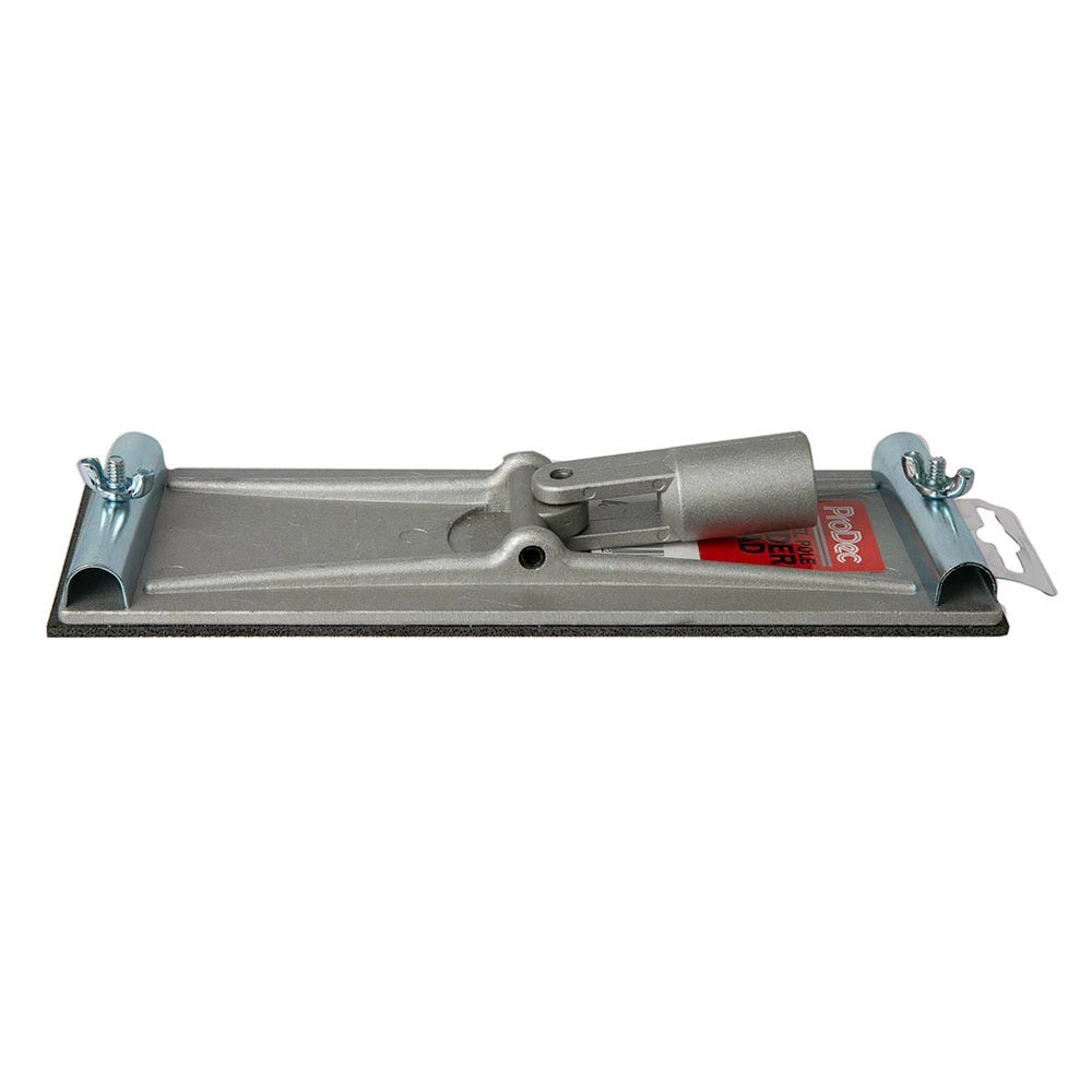 ProDec Swivel Pole Sander Head has a heavy duty cast aluminium body. It is able to move and rotate in all directions, it is used with the hardwood handle to easily abrade floors, walls, ceilings and other flat surfaces. Abrasive paper is securely clamped onto the head which has a cellular rubber underside to ensure even contact with the substrate.