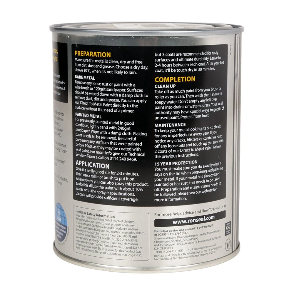 - Ronseal Direct to Metal Paint boasts 15 years of protection for your surfaces
