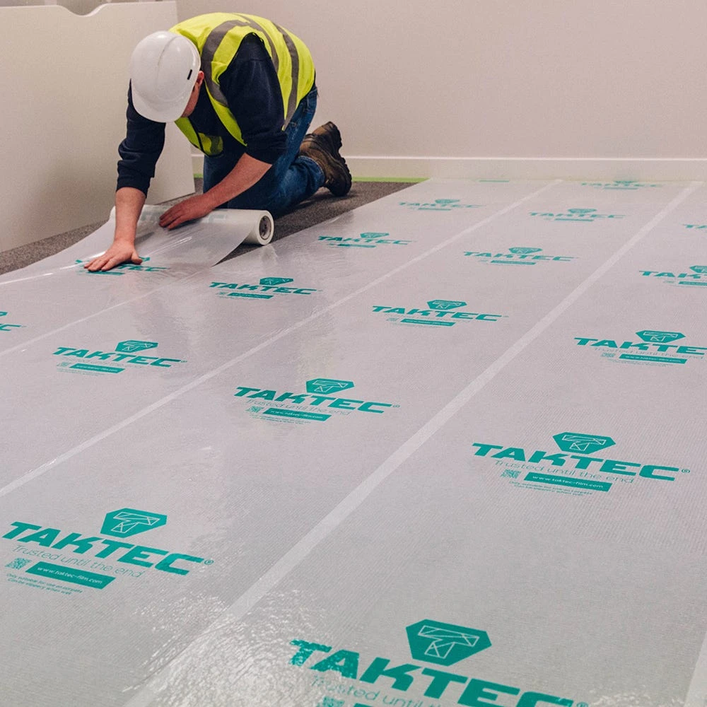 Taktec® Carpet is a heavy-duty self-adhesive film designed to withstand the demands of any job, whether it’s an office fit-out, a new home move or a quick decorating project. It’s trusted until the end! Use Taktec® to save your carpets from damage on your next project. Roll size suited to both contractor & DIY.