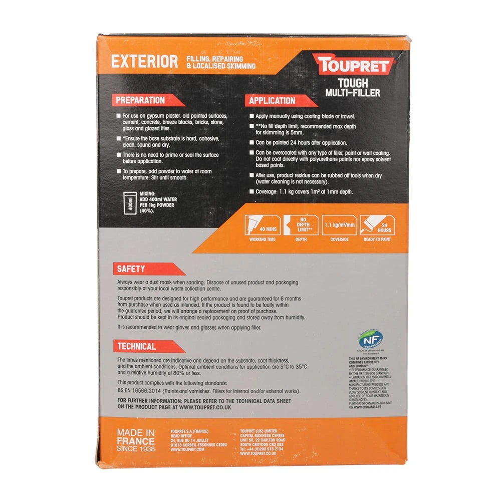- This Toupret Fibarex Multipurpose Exterior Filler is for levelling and repairing exterior substrates without formwork